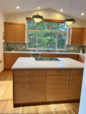 This job was near Like Padden, in the Parkhurst neighborhood. The Fir kitchen was designed by Domistyle, and it included removal of the wall that originally separated the kitchen and dining room, as well as the new cabinetry and countertops. The clients were looking for a modern, Scandinavian to better align with the overall style of their home.