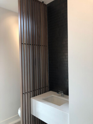 Our client in the Bellingham neighborhood of Edgemoor had a modern, open-concept living space with amazing Bellingham Bay views. The kitchen, living room, dining room, and music room were essentially one large room without any defining spacial characteristics the homeowners were looking for. As the home has stunning water views, the design staff wanted the space to remain as open and see thru as possible, while still breaking up and defining particular areas.